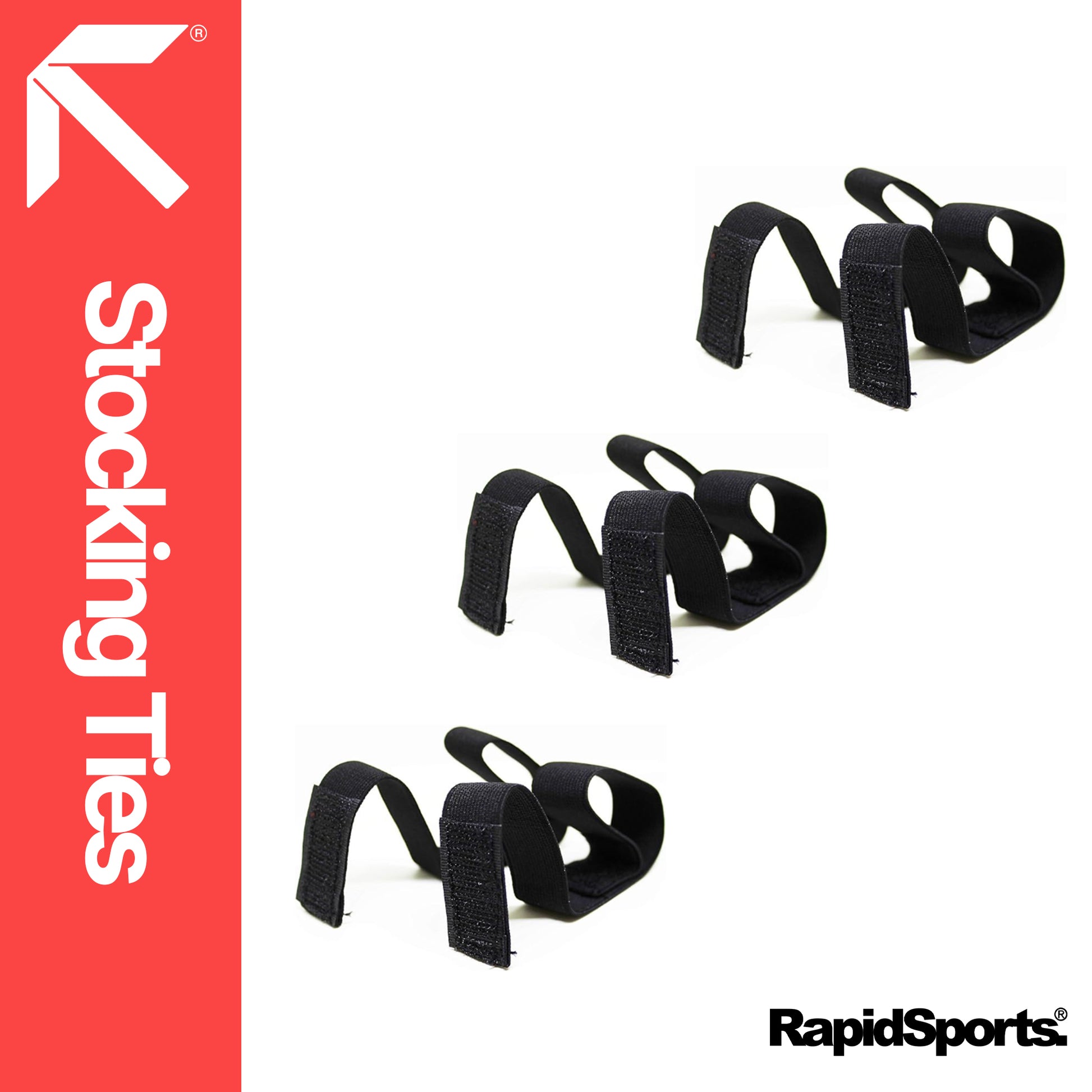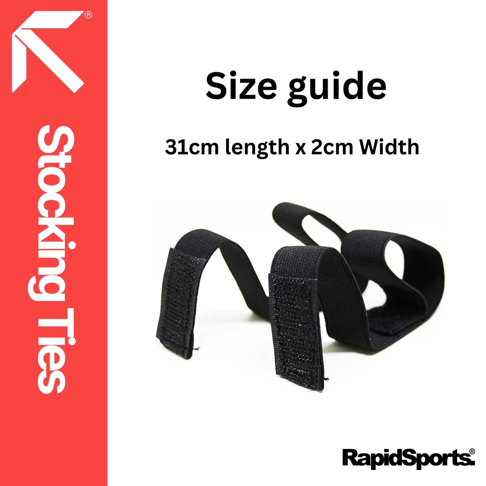 Stocking Ties Ideal For Sports that comes in pair. It's elasticated straps with self adhesive hook fastening to hold socks up and in place throughout the match.